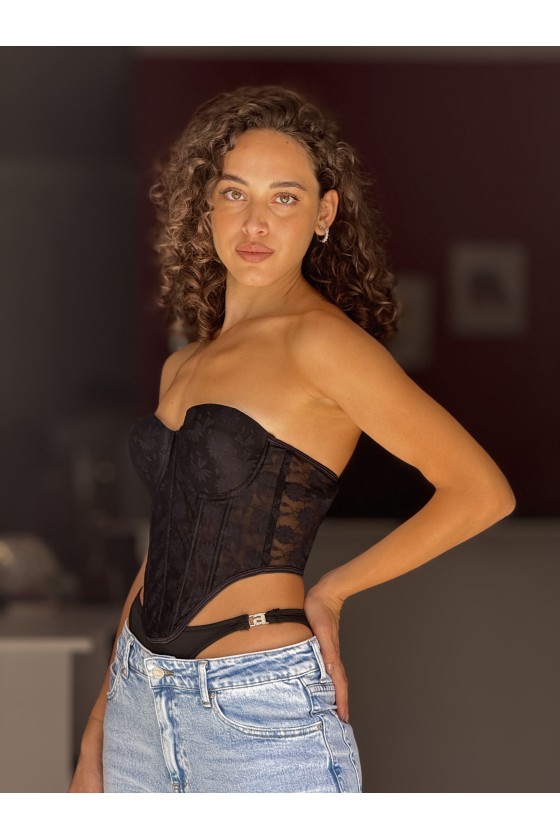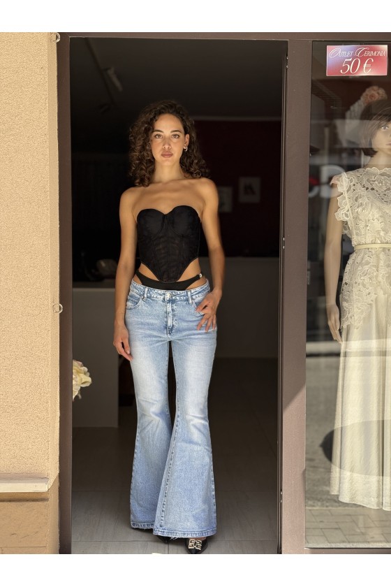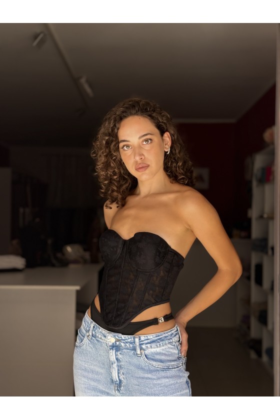 Tessuto un po elasticizzato, senza coppe, con zip sul retro.