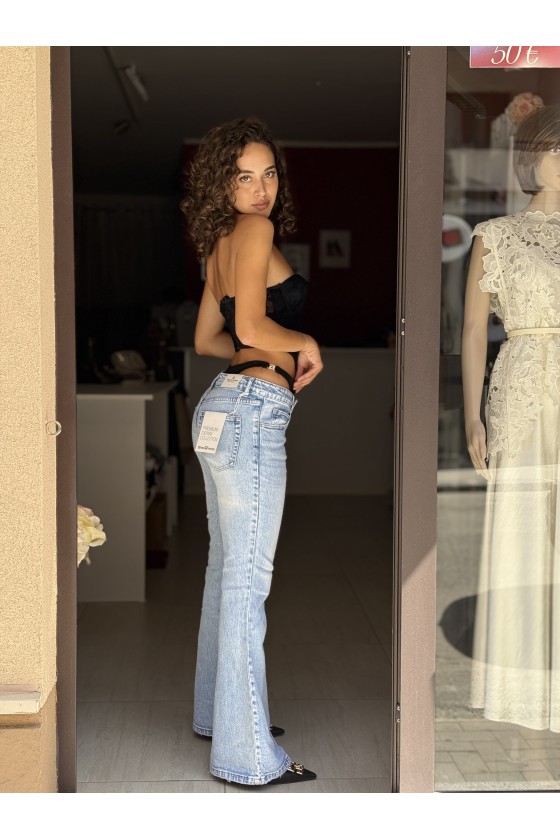 Cintura inclusa, pantalone vita alta con elastico in vita sul retro. tessuto elasticizzato