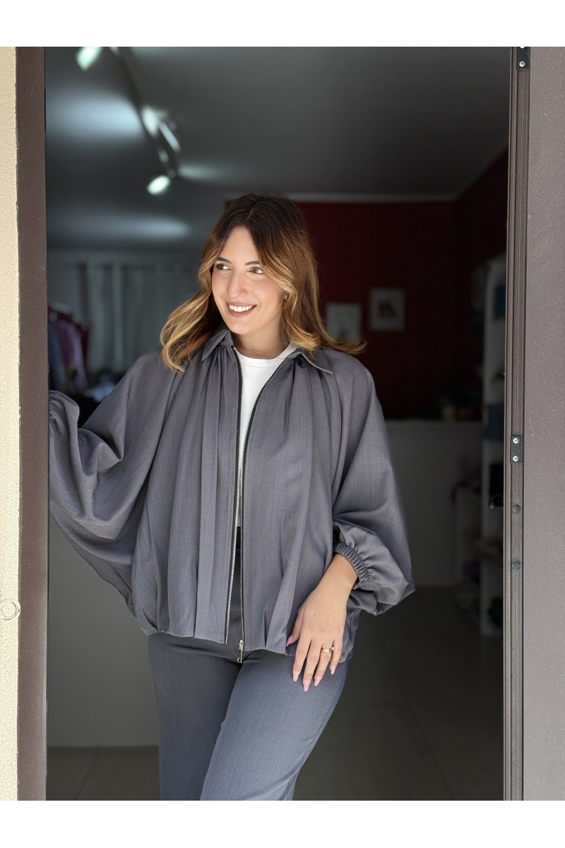 Pantalone vita alta con elastico sul retro. Veste fino a M/L. Giacca oversize .