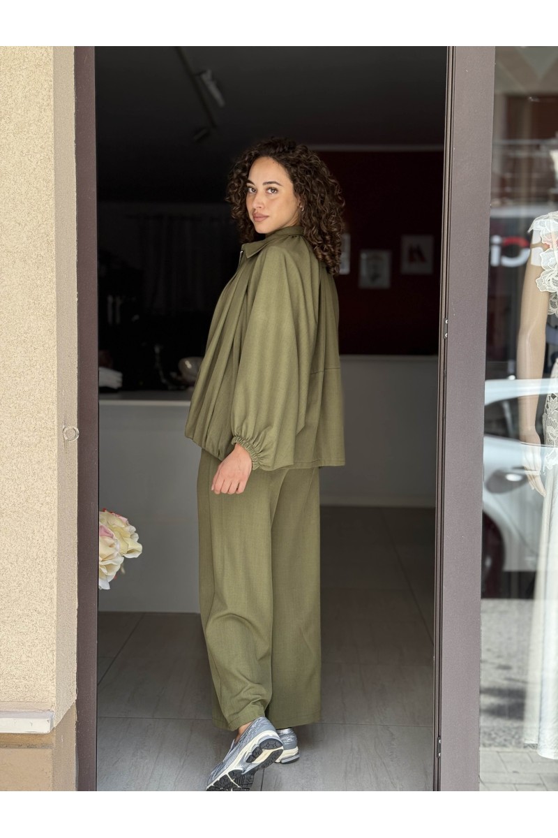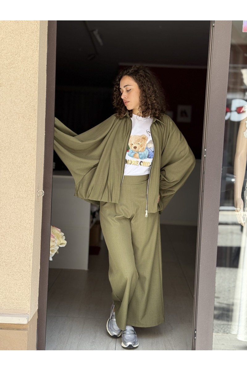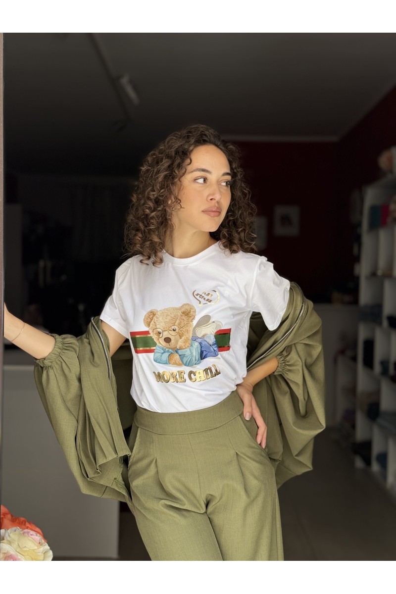 Pantalone vita alta, con elastico in vita sul retro. Modello corto. T-shirt esclusa