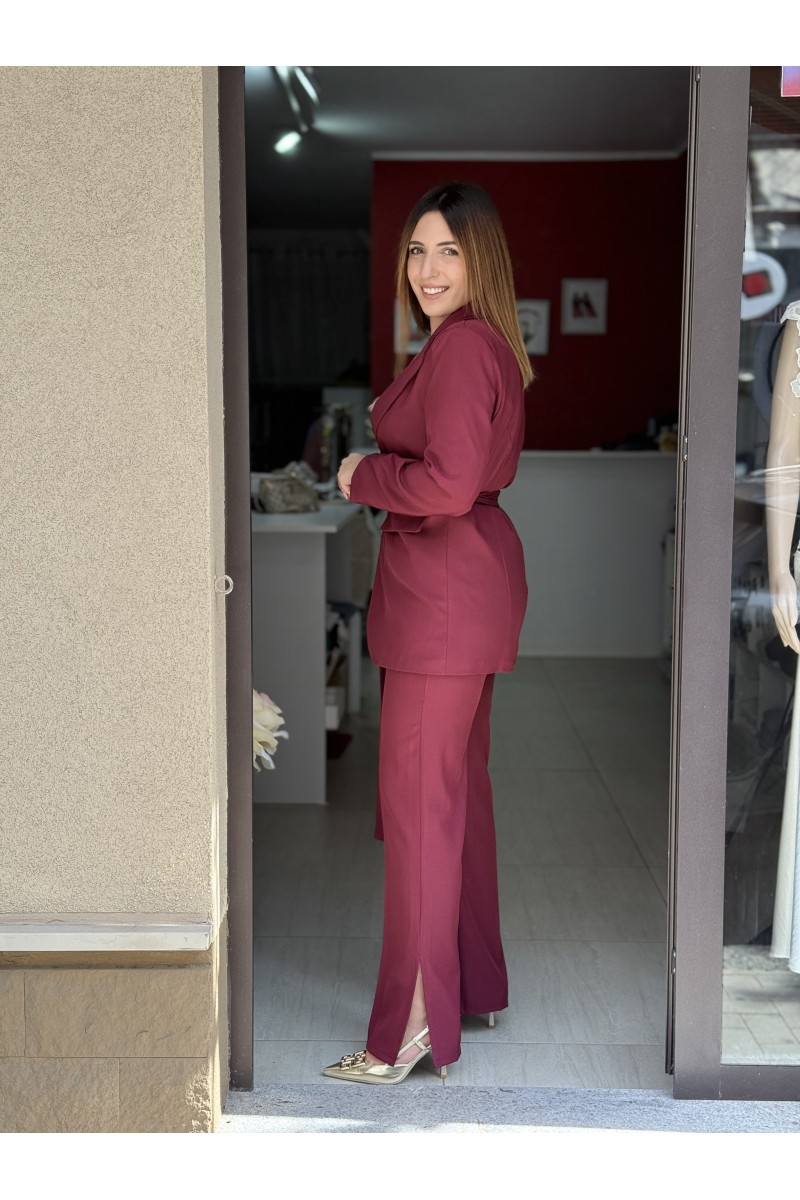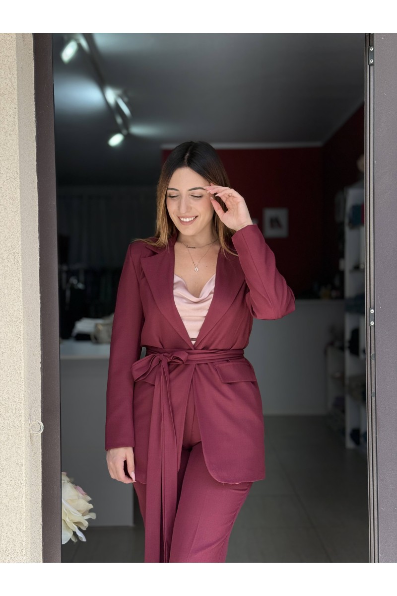 Giacca modello oversize, foderata . Pantalone vita alta con elastico in vita sul retro