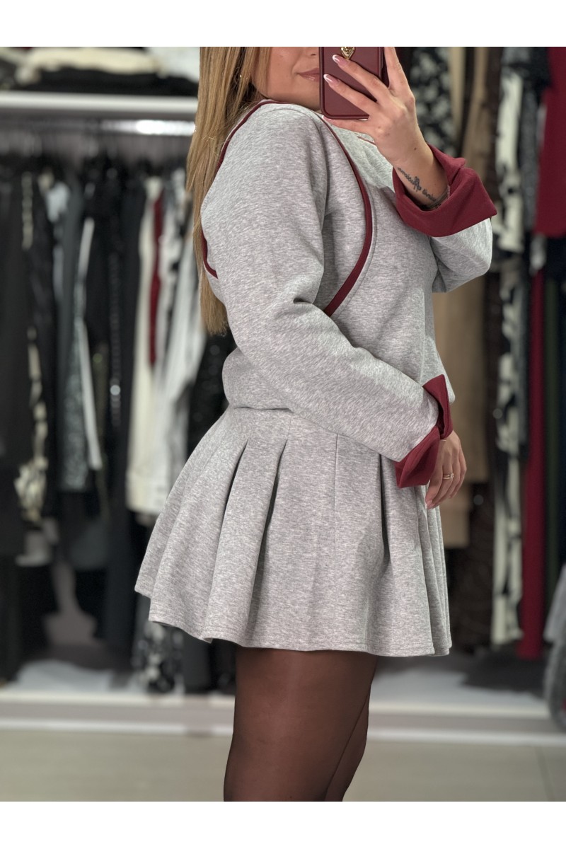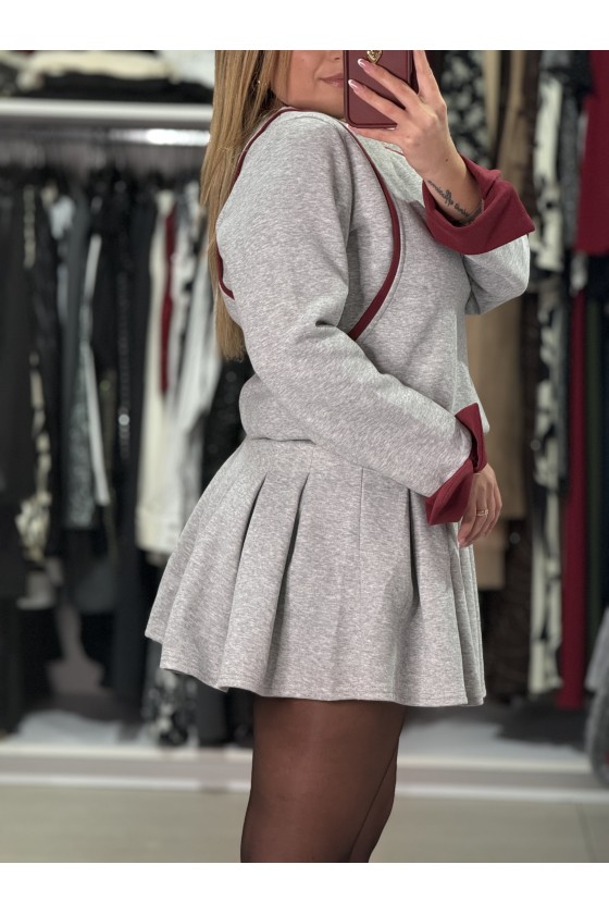 Felpa lunghezza normale con laccio laterale per regolarla. Gonna con sottoveste a pantaloncino ed elastico in vita