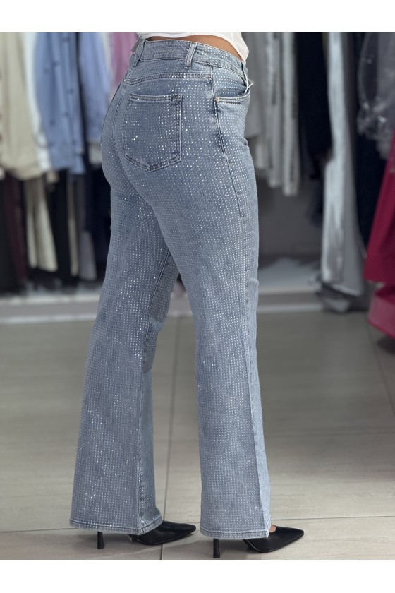 Jeans Wide Leg Micro Strass