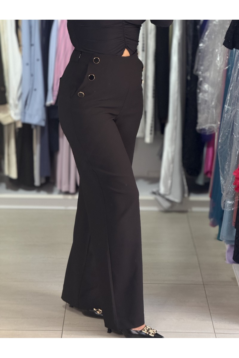 Vita alta, con elastico in vita sul retro e zip laterale.